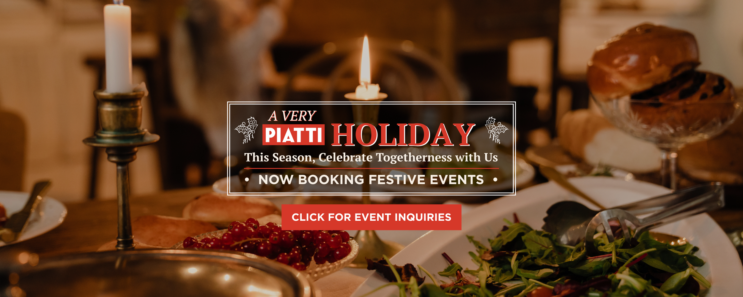 Established in 1987, Piatti offers finely crafted, classic Italian cuisine rooted in tradition and served in a warm yet refined setting. At the heart of our menu is our pasta—rolled and cut by hand each day, and cooked with care and intention. Piatti brings a fresh perspective to the time-honored Italian restaurant, blending polished hospitality with a familiar, welcoming spirit. It’s a place where cherished traditions are celebrated, new memories are made, and friends and family naturally gather—whether dining in or enjoying at home.